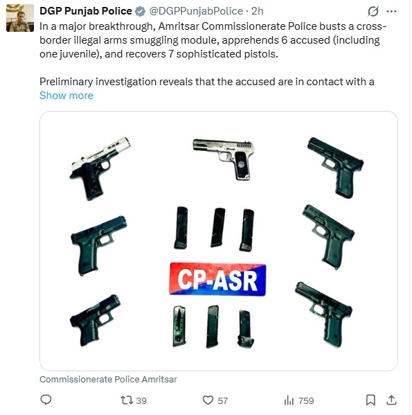अमृतसर में अवैध हथियार तस्करी गिरोह का भंडाफोड़, 6 आरोपी गिरफ्तार Amritsar में एक बड़ी कार्रवाई के तहत अमृतसर में