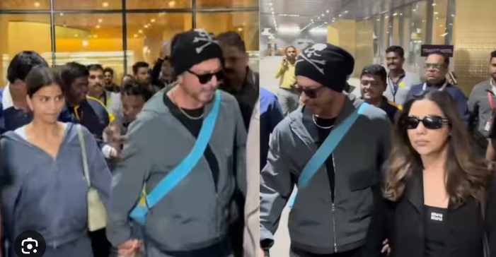 मुंबई एयरपोर्ट पर हाल ही में बॉलीवुड के किंग खान शाहरुख़ खान अपनी पत्नी गौरी खान और बेटी सुहाना खान के साथ स्पॉट किए गए। विदेश यात्रा के बाद जैसे ही यह स्टार फैमिली मुंबई लौटी, एयरपोर्ट पर मौजूद फैंस और पैपराज़ी की निगाहें उन पर टिक गईं। शाहरुख़ खान हमेशा की तरह सादगी भरे लेकिन स्टाइलिश अंदाज़ में नजर आए, वहीं गौरी और सुहाना ने भी अपने एलिगेंट लुक से सभी का ध्यान खींचा।