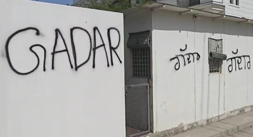 कार्यकर्ताओं ने सिर पर काली पट्टियां बांधकर नारेबाजी की, उनका पुतला फूंका और घर की दीवार पर “गद्दार” शब्द लिख दिया।