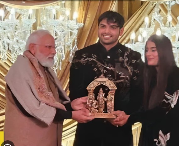 प्रधानमंत्री नरेंद्र मोदी ने नीरज चोपड़ा–हिमानी मोर के विवाह रिसेप्शन में शामिल होकर दिया आशीर्वाद