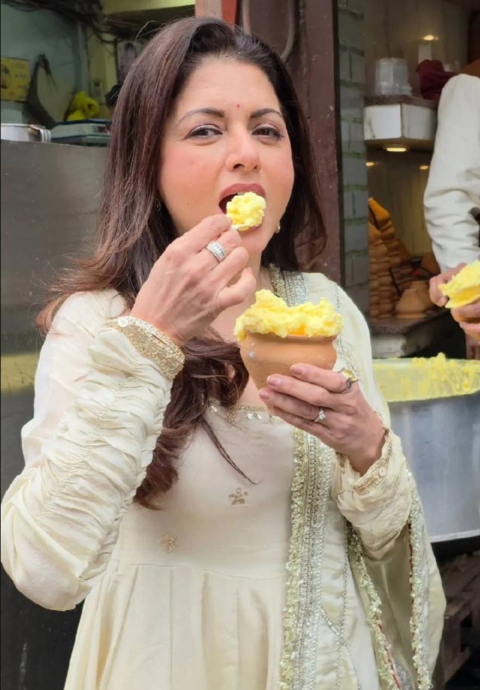 तस्वीरों में भाग्यश्री बनारस की मशहूर गलियों में स्ट्रीट फूड का आनंद लेती दिखाई दे रही हैं। कहीं वह चाट का स्वाद ले रही हैं तो कहीं स्थानीय ठेलों पर खड़े होकर पारंपरिक व्यंजनों का मजा लेती नजर आती हैं। उनके चेहरे की मुस्कान साफ जाहिर करती है कि वह इस यात्रा का भरपूर आनंद उठा रही हैं। पति हिमालय दासानी भी पूरे ट्रिप के दौरान उनके साथ नजर आए और दोनों की केमिस्ट्री फैंस को खूब पसंद आ रही है।
