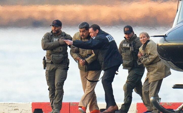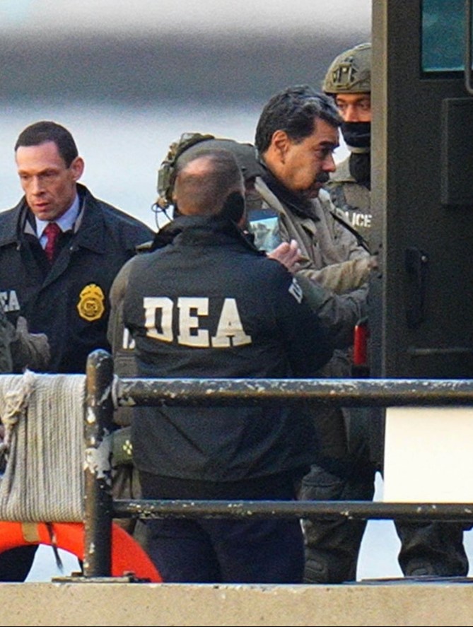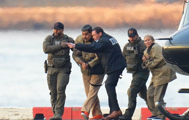 6…jan…वेनेजुएला के अपदस्थ राष्ट्रपति निकोलस मादुरो और उनकी पत्नी सिलिया फ्लोरेस को सोमवार सुबह अमेरिका लाकर न्यूयॉर्क की संघीय अदालत में पेश किया गया। भारी सुरक्षा व्यवस्था में मादुरो को ब्रुकलिन डिटेंशन सेंटर से हेलीकॉप्टर और बख्तरबंद वाहन से मैनहैटन स्थित अदालत परिसर तक ले जाया गया, जहां उनके हाथों में हथकड़ी (प्लास्टिक ज़िप‑टाई) लगी हुई थी।