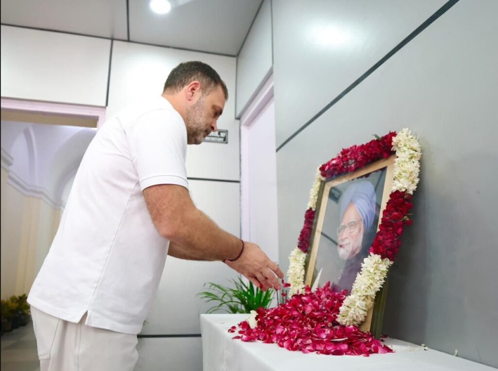 राहुल गांधी ने पूर्व प्रधानमंत्री मनमोहन सिंह की पुण्यतिथि पर दी श्रद्धांजलि