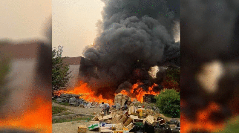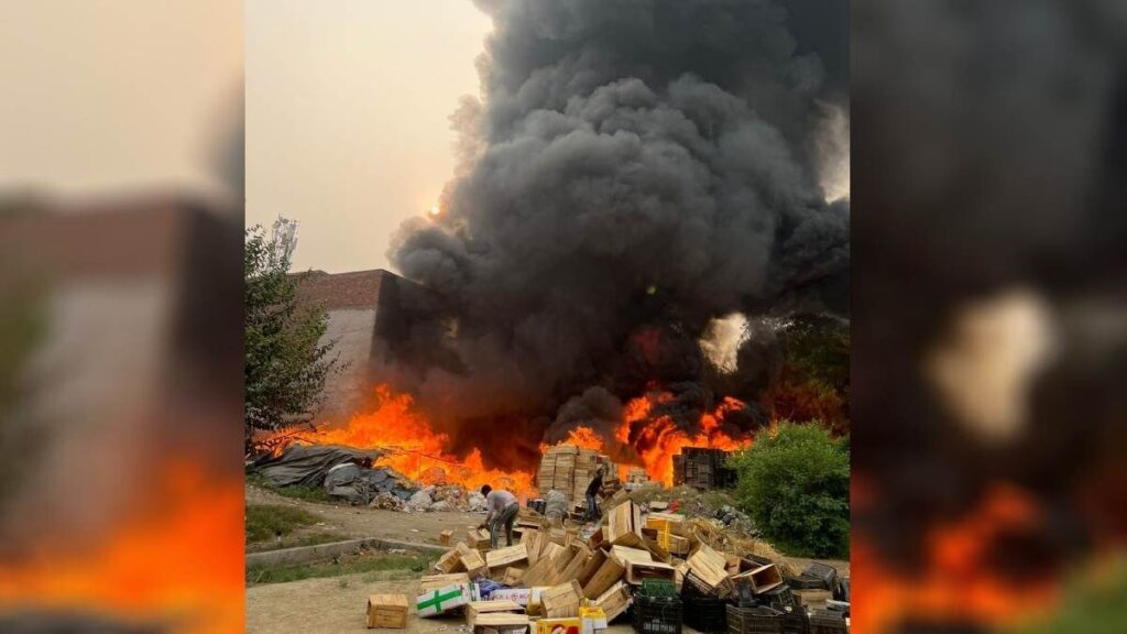 सब्जी मंडी में भीषण आग, प्लास्टिक क्रेटों में धमाके से मचा हड़कंप