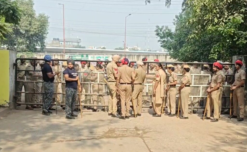 जालंधर, 23 अक्टूबर: नेशनल हाईवे जाम के एलान को देखते हुए पंजाब पुलिस ने जालंधर के पंजाब रोडवेज डिपो-1 के बाहर भारी पुलिस फोर्स तैनात कर दी है। संभावित विरोध प्रदर्शन की आशंका के चलते पुलिस प्रशासन ने सुरक्षा के कड़े इंतज़ाम किए हैं।