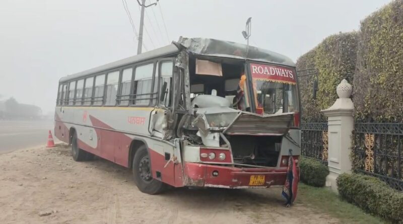 Highway पर PunBus ने टिप्पर को मारी टक्कर, ड्राइवर घायल
