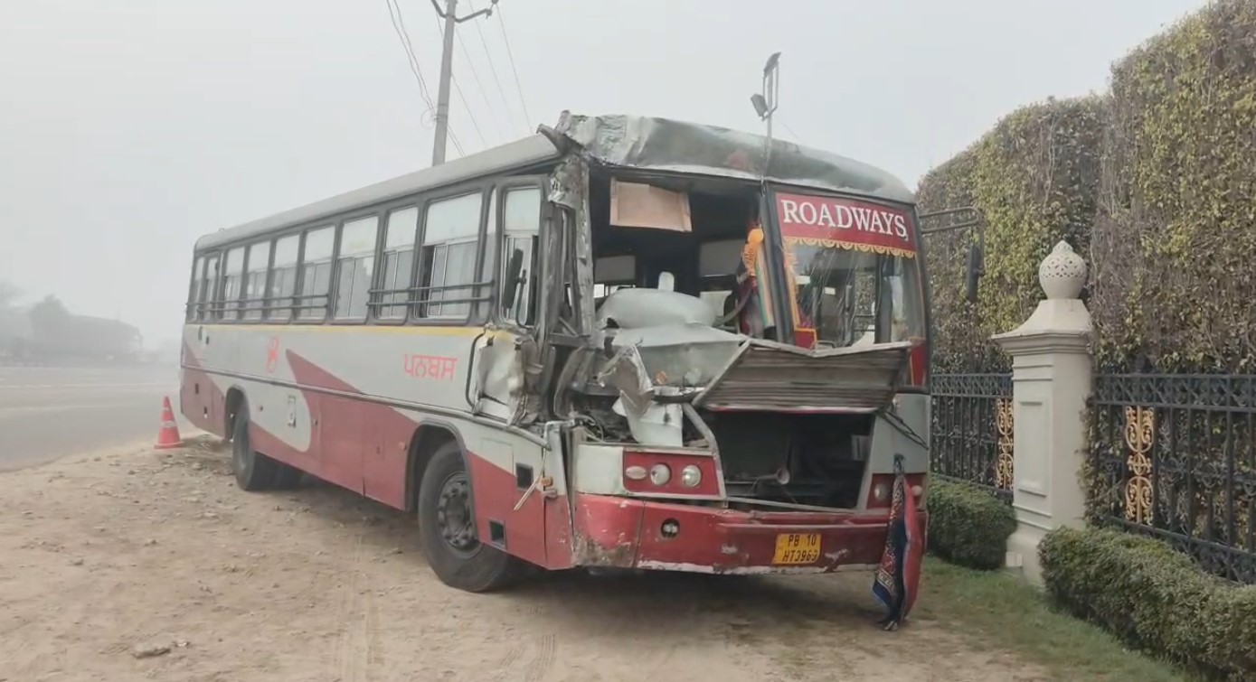 Highway पर PunBus ने टिप्पर को मारी टक्कर, ड्राइवर घायल