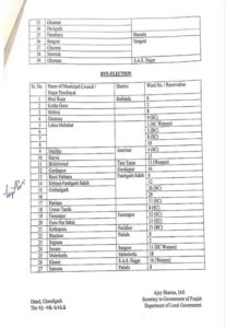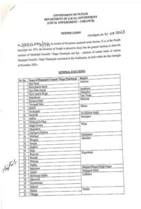 जालंध्र जिले में गोराया, भोगपुर, बिलगा, शाहकोट के अंद्र नगर परिषद में चुनाव होंगे। कपूरथला में बेगोवाव, भुलत्थ, ढिल्लवां, नडाला और लुधियाना में मुल्लांपुर दाखा, साहनेवाल माछीवाड़ा, मलोटू मैं नगर परिषद चुनाव होने हैं। इसी तरह, बठिंडा, अमृतसर, तरनतारन, गुरदासपुर, फतेहगढ़ साहिब, फिरोजपुर, फरीदकोट, पटियाला, संगरूर, मालेरकोटला, एस.ए.एस. नगर,पटियाला में उपचुनाव होने हैं।